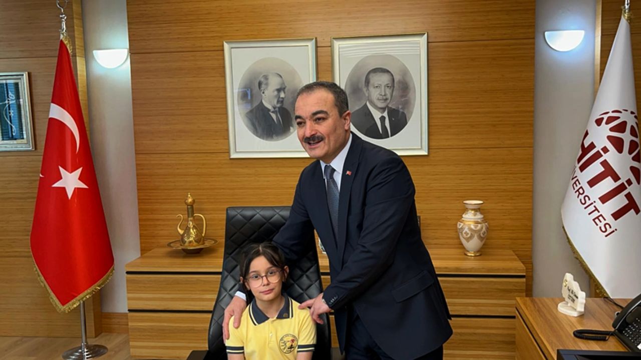 Hitit Üniversitesi Rektörü Prof. Dr. Ali Osman Öztürk, 23 Nisan Ulusal Egemenlik Çocuk Bayramı etkinlikleri kapsamında makamını temsili olarak çocuklara devretti.