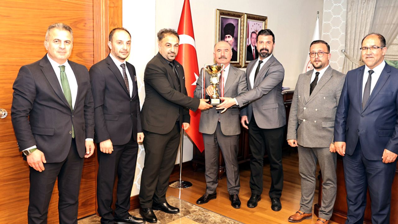 Ziyaret sonunda Vali Ali Çalgan’a şampiyonluk kupası ve ismi yazılı forma hediye edildi.