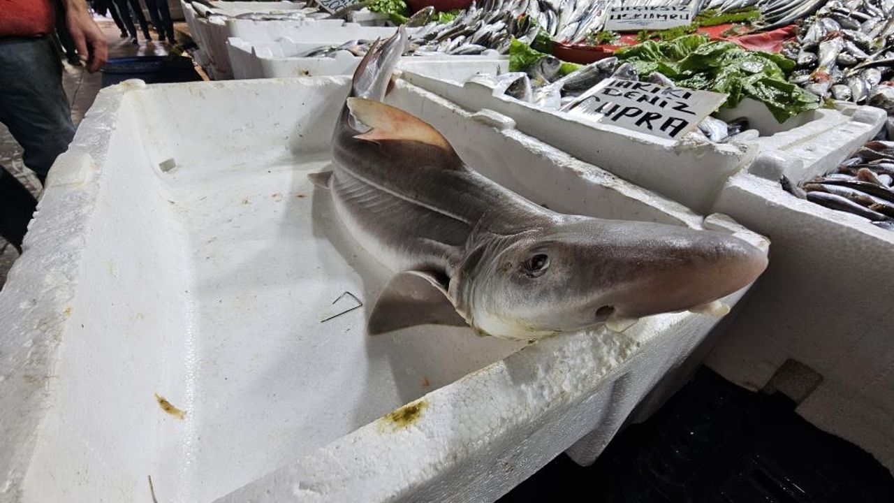 Kapalı çarşıda balıkçılık yapan Nihat Baştaş, köpek balığını satışa sundu. İskenderundan getirilen ve kilosu 600 liradan satışa sunulan köpek balığı hakkında açıklama yapan Nihat Baştaş,"Kanser hastaları genelde talep ediyor.İskenderundan geldi.Cam göz köpek balığı.İnsanlar ilk gördüğünde şaşırıyor.İlk defa görenler var.Fotoğraf felan çekenler oluyor.Kilosu 600 lira" dedi.