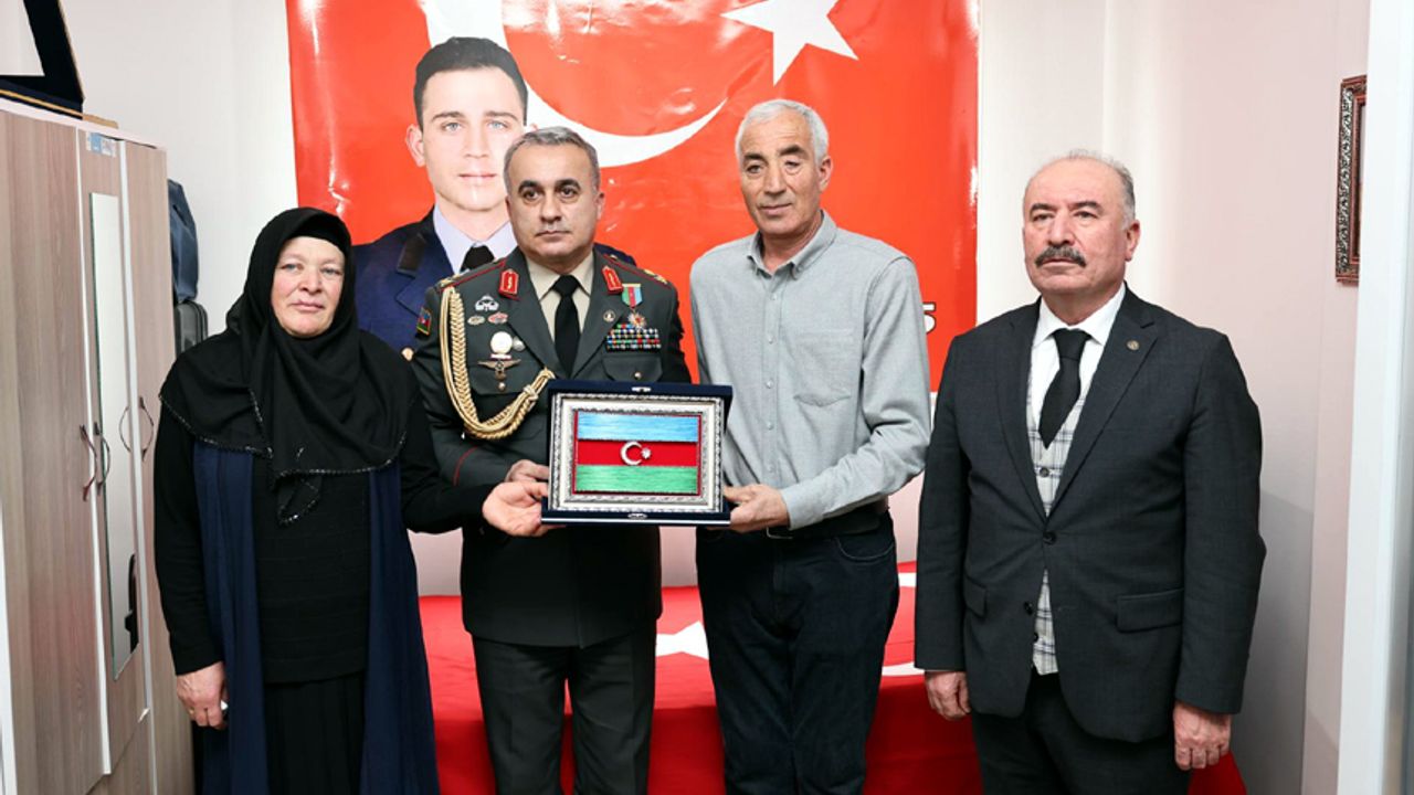 Ziyarette, Azerbaycan Silahlı Kuvvetler Ataşesi Tuğgeneral Zaur Zeynalov, şehidimizin babası Rüştü İbbiği’ye başsağlığı dileklerini ileterek Azerbaycan bayrağı takdim etti.