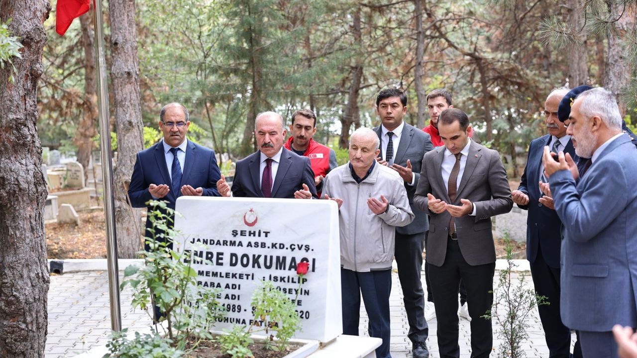 Şehidin manevi huzurunda bir araya gelen protokol üyeleri ve vatandaşlar, mevlit okunmasının ardından şehit Emre Dokumacı için dua etti.