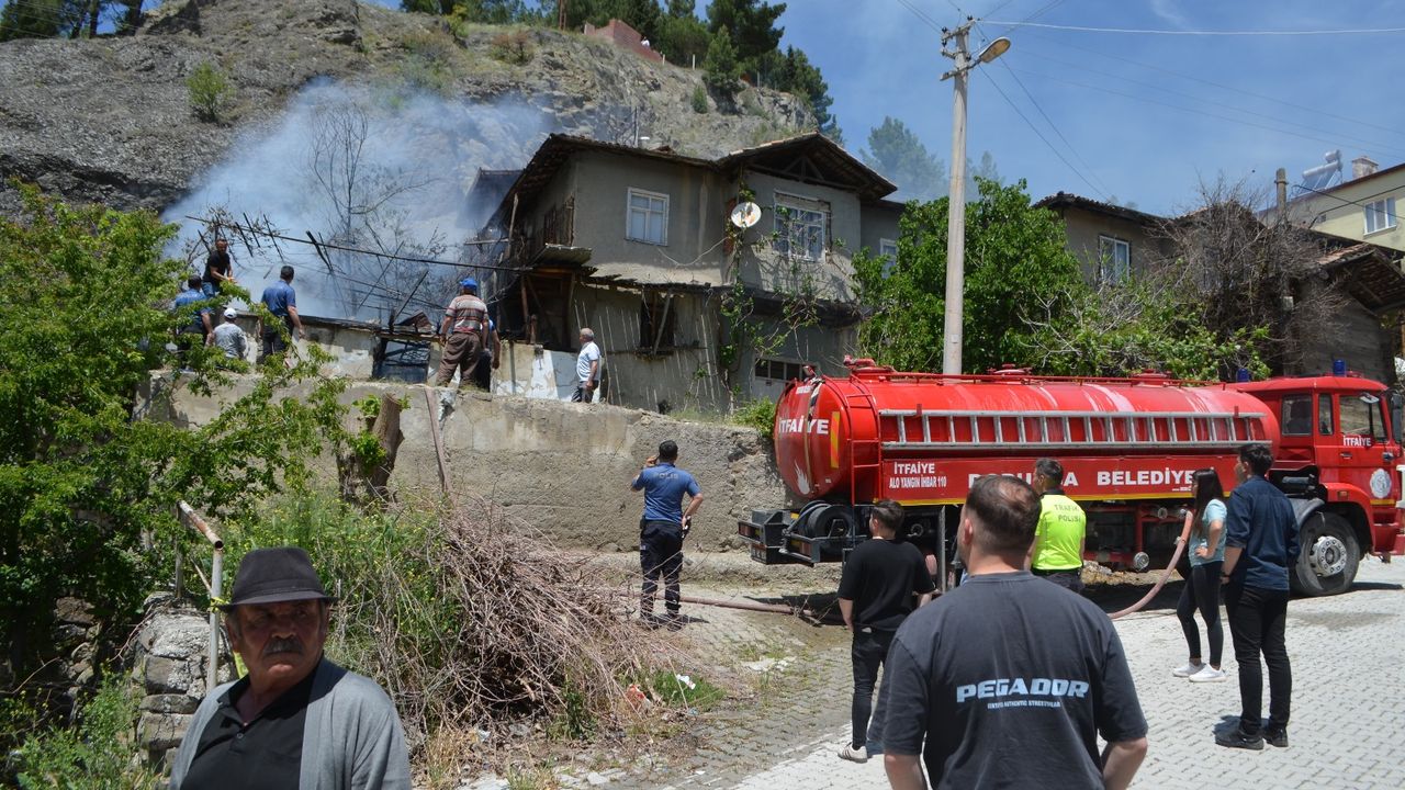 Doğu Mahallesi Özcan Sokak'ta Necati Madan'a ait ahşap evin bahçesinde yakılan semaverden çıkan kıvılcımlar nedeniyle evin müştemilat bölümünde yangın çıktı.