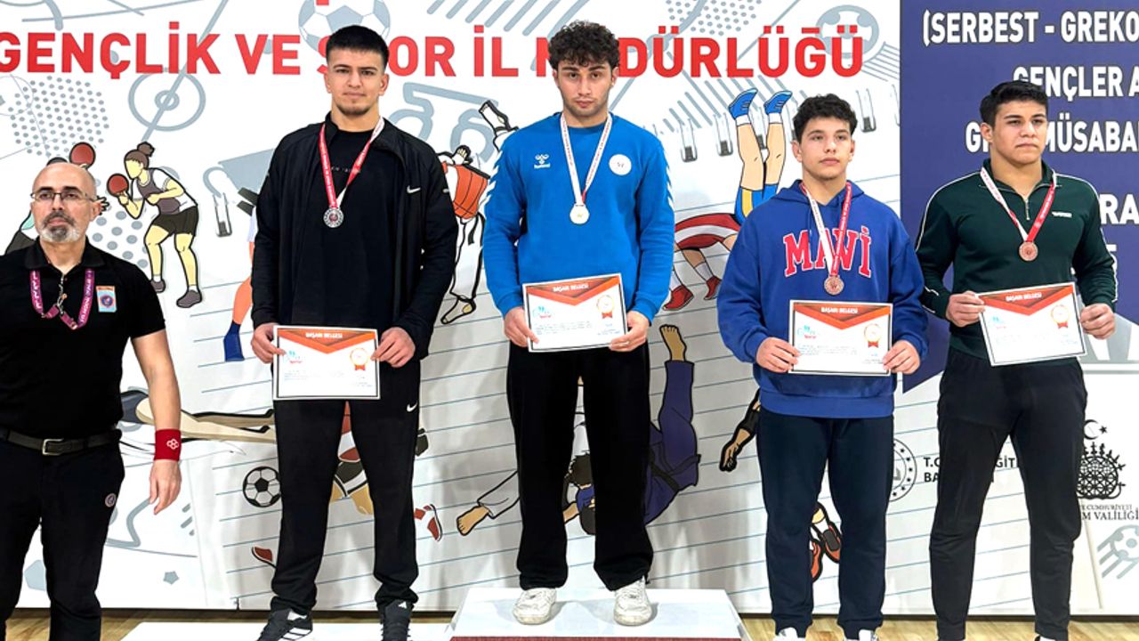 Çorum’da yapılan Okullar arası A Gençler Serbest Güreş grup birinciliğinde iki altın iki gümüş ve bir bronz madalya kazanan beş sporcu Türkiye Şampiyonasında mücadele etmeye hak kazandılar.