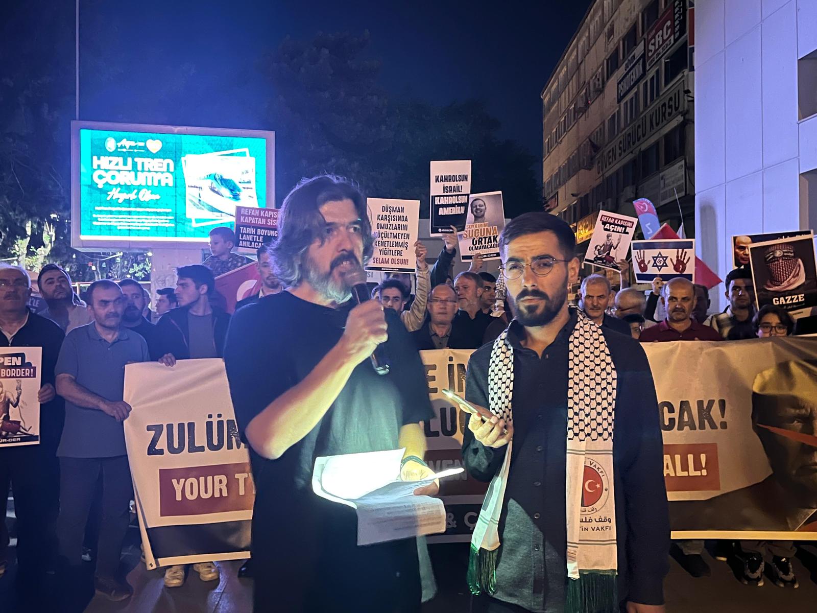 Sivil toplum kuruluşları adına bir basın açıklaması okuyan Murat İslam, Gazze’de yaşanan katliamları protesto etmek ve direnişin ve yüreği Gazze’de mazlumlar için çarpan tüm vicdanlı insanların yanında olduklarını haykırmak için toplandıklarını söyledi.