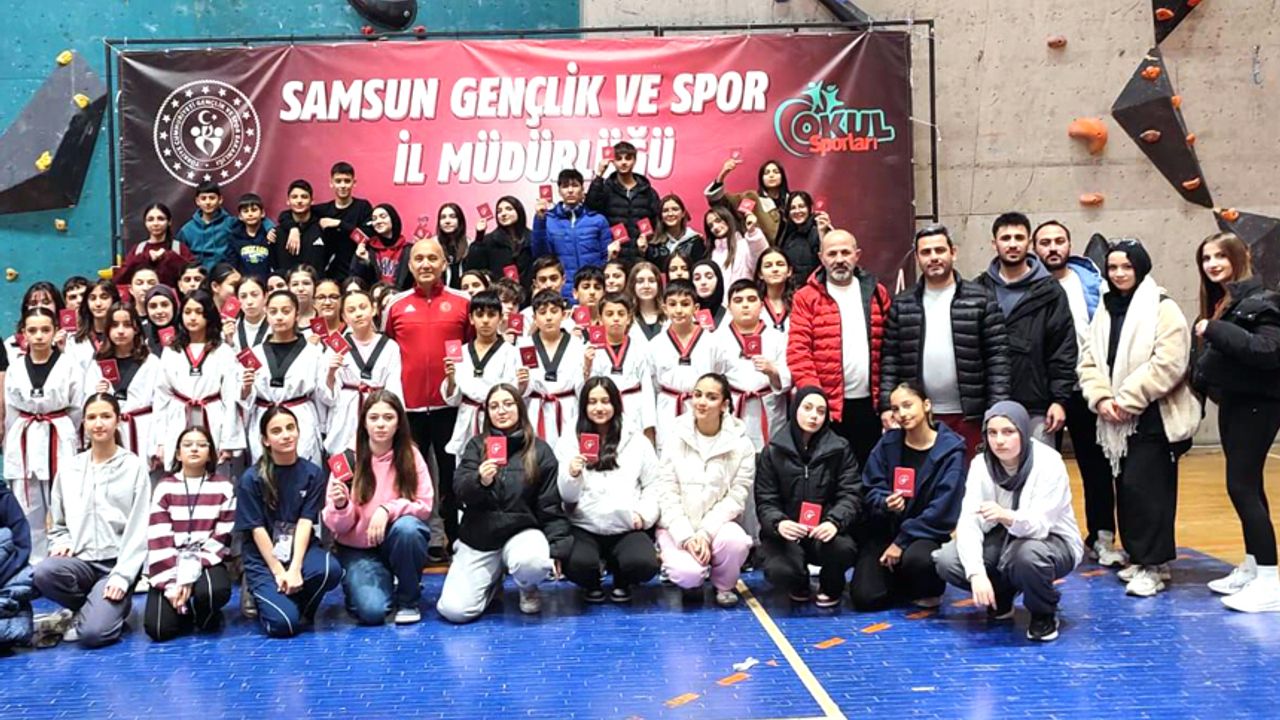 Çorum Taekwondo İl Temsilcisi İshak Kepçeli’nin de Komisyon üyesi olarak görev yaptığı kuşak sınavı cumartesi günü Samsun Canik Spor Salonunda yapıldı.