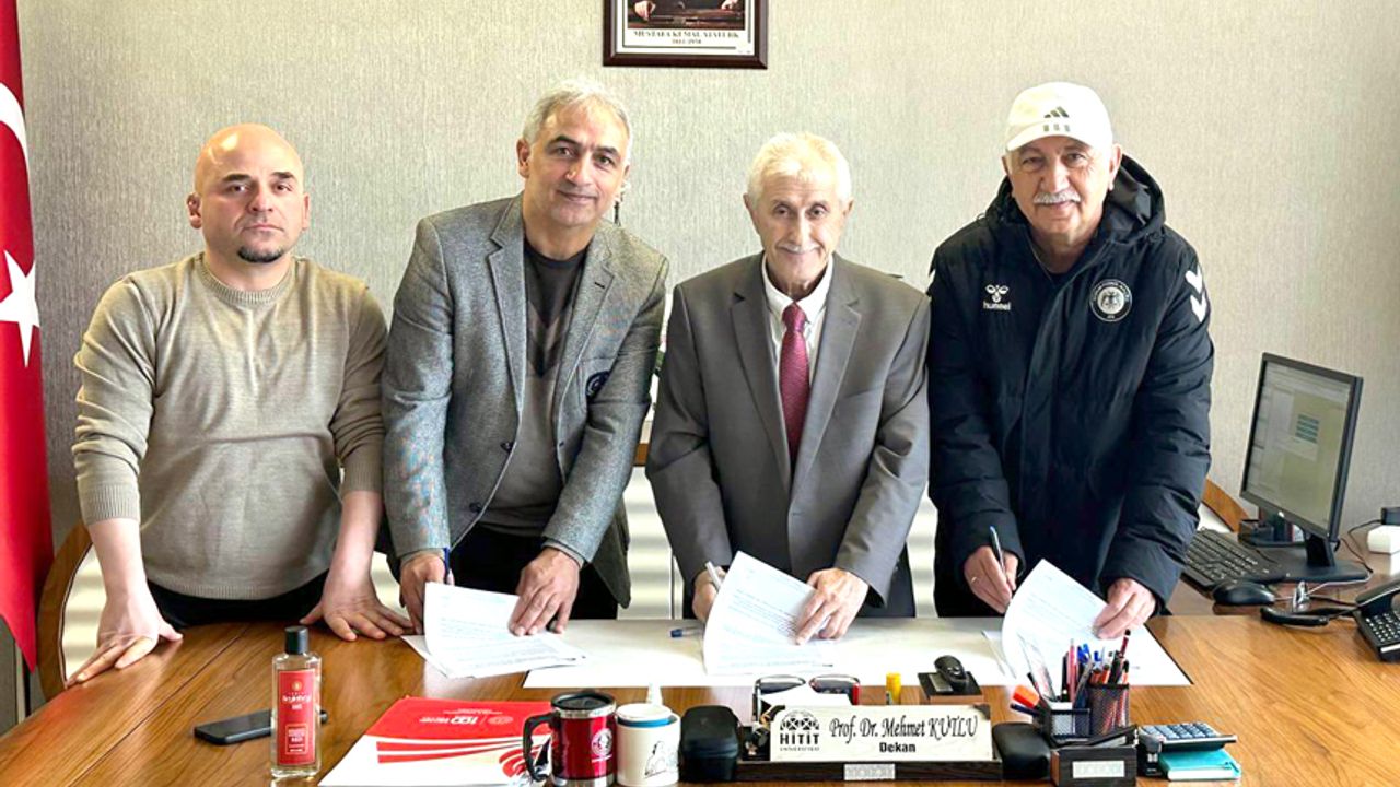 Spor Bilimleri Fakültesi Antrenörlük Eğitimi Bölümü ile Türkiye Futbol Antrenörleri Derneği (TÜFAD) Çorum Şubesi arasında, futbol uzmanlık dalı öğrencilerinin mesleki gelişimlerini desteklemek, saha deneyimi kazanmalarını sağlamak ve üniversite–saha iş birliğini güçlendirmek amacıyla kapsamlı bir iş birliği protokolü imzalandı.