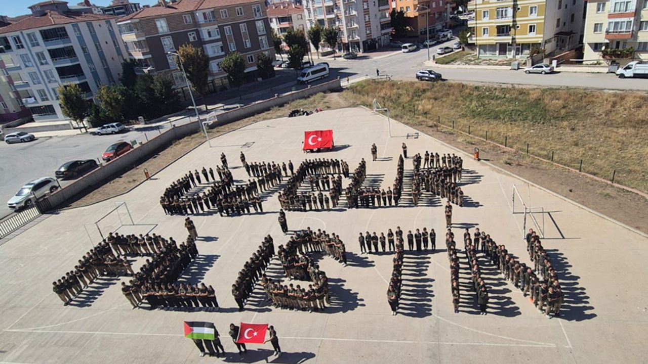 Etkinlikte öğrenciler, öğretmenlerinin rehberliğinde kendi bedenleriyle “ÖZGÜR FİLİSTİN” yazısını oluşturarak dünyaya güçlü bir dayanışma mesajı verdiler. Okul bahçesinde Türk ve Filistin bayraklarının birlikte dalgalandığı etkinlikte, öğrenciler “Filistin’e Özgürlük!” nidalarıyla barış ve kardeşlik çağrısında bulundu.