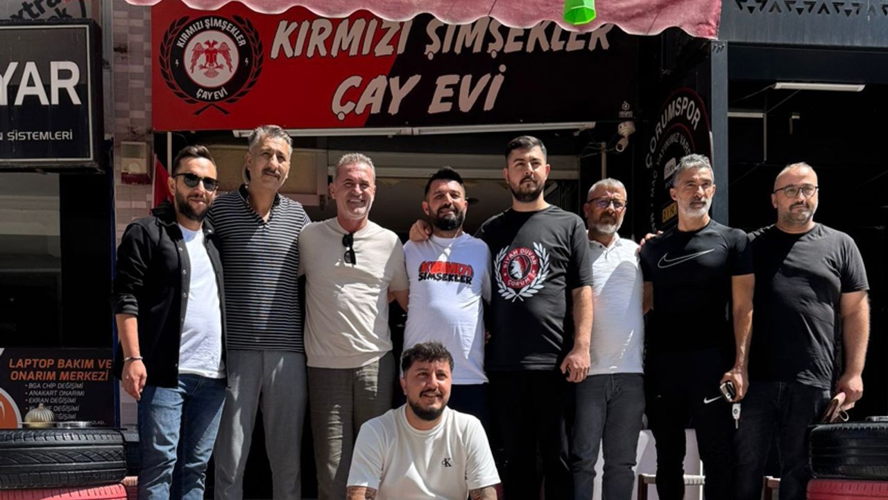 Kırmızı- Şimşekler Çay Ocağı'nda gerçekleşen buluşmada Tam'ın ekibinde yer alan kaleci antrenörü Suat Arıcan ile Kırmızı- Şimşekler Taraftar Grubu liderleri Hüseyin Nalcı ile Şevket Yumutkan ve Siyahduvar Taraftar Grubu Lideri Özgür Yalvaç da yer aldı.
