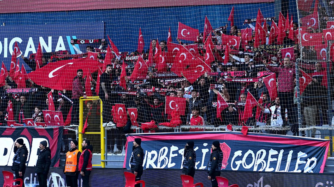 Çorum FK taraftarları Çorum AK Parti Gençlik Kolları tarafından Çorum’dan giden taraftarlara verdiği bayraklar ile tribünde bayrak şov yaparak büyük beğeni topladılar.