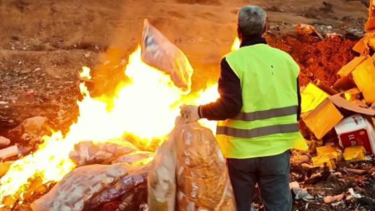 Ekipler tarafından kamyonlara yüklenen ürünler, açılan topraklar çukurlarda ateşe verilerek imha edildi.