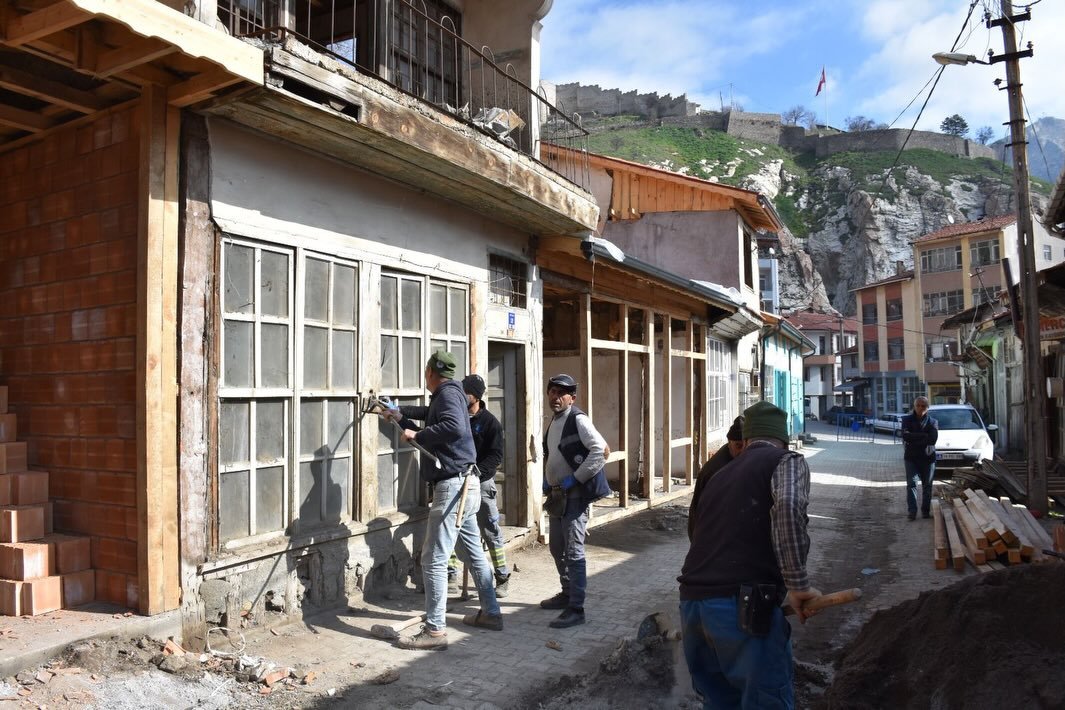 İskilip Belediye Başkanı İsmail Çizikci, Kral Kaya Mezarları çevresinde yürütülen cephe sağlıklaştırma çalışmaları ile Semerciler Arastası’nda devam eden restorasyon sürecini yerinde inceledi.
