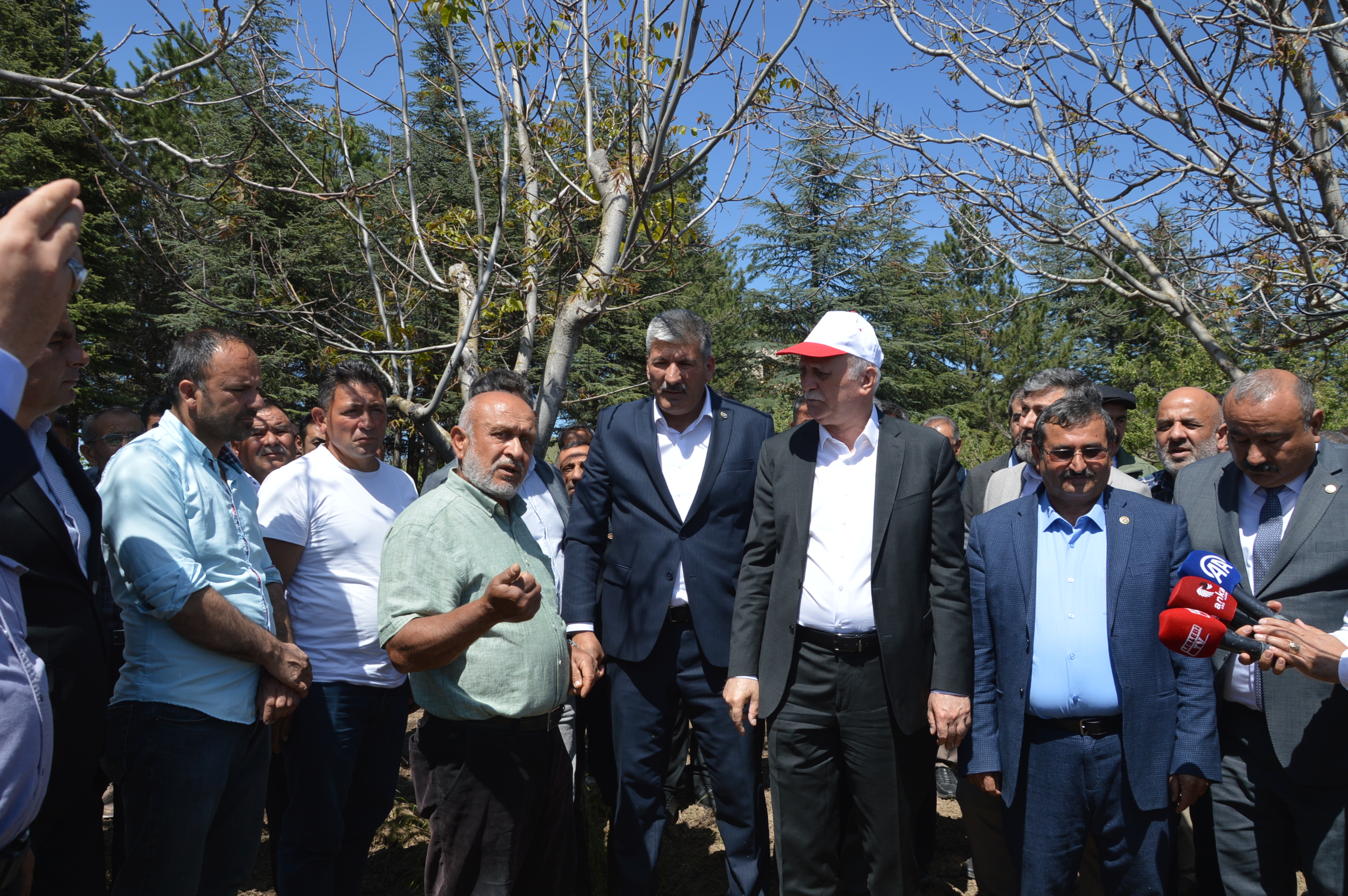 “Özellikle bizim üreticilerimizin bahçeleri gördüğümüzde üreticilerimizin beklentileri de bu afetin büyüklüğüne göre şekilleniyor. Öyle yerler var bak gördük dallar kurumuş meyve ağaçlarının gövdeleri zarar görmüş. Bu şu demektir; ‘Önümüzdeki yıllarda bu ağaçlar meyve tutumu yapmayacak’ demektir. İyi bakım yaparsak bazı bahçeleri kurtarmamız mümkün olabilir. İşte bu manada afetin de büyüklüğünü dikkate alarak üreticilerimizin bazı talepleri var. Bu taleplerin yerine getirilmesi lazım. Bununla alakalı hem sahayı geziyoruz Hem Ankara'ya geldiğimizde sayın cumhurbaşkanımıza, maliye bakanımıza, çalışma bakanımıza ve tarım bakanımıza sahada gördüklerimizi anlatıyoruz. Çiftçilerimizin taleplerini dile getiriyoruz. Sayın Cumhurbaşkanımızla 15 günde 2 defa bir araya geldim ve sahada gördüklerimi anlattım. Sahadaki manzarayı kendileriyle paylaştım. Şimdi burada üreticilerimiz haklı olarak bir maddi destek istiyorlar. Çünkü çiftçilerimizin önümüzdeki yıl bu bahçelere girebilmeleri için maddi desteğe ihtiyacı var. Tarım Bakanlığı bu manada bir çalışma yapıyor.