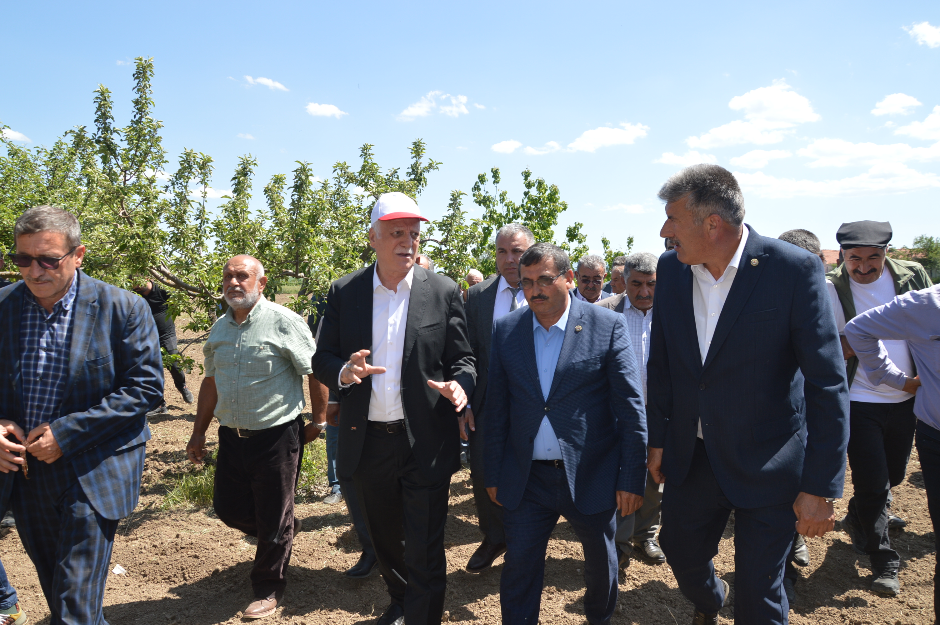 Pınarcık köyünde Ali Yarbaşı’ya ait ceviz, elma ve armut bahçesini gezen Bayraktar, çiftçilerin taleplerini dinledi.