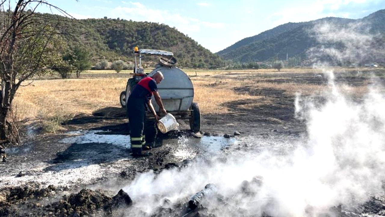 Tarladan dumanların yükseldiğini gören çevredeki vatandaşlar, durumu 112 Acil Çağrı Merkezi'ne bildirdi.