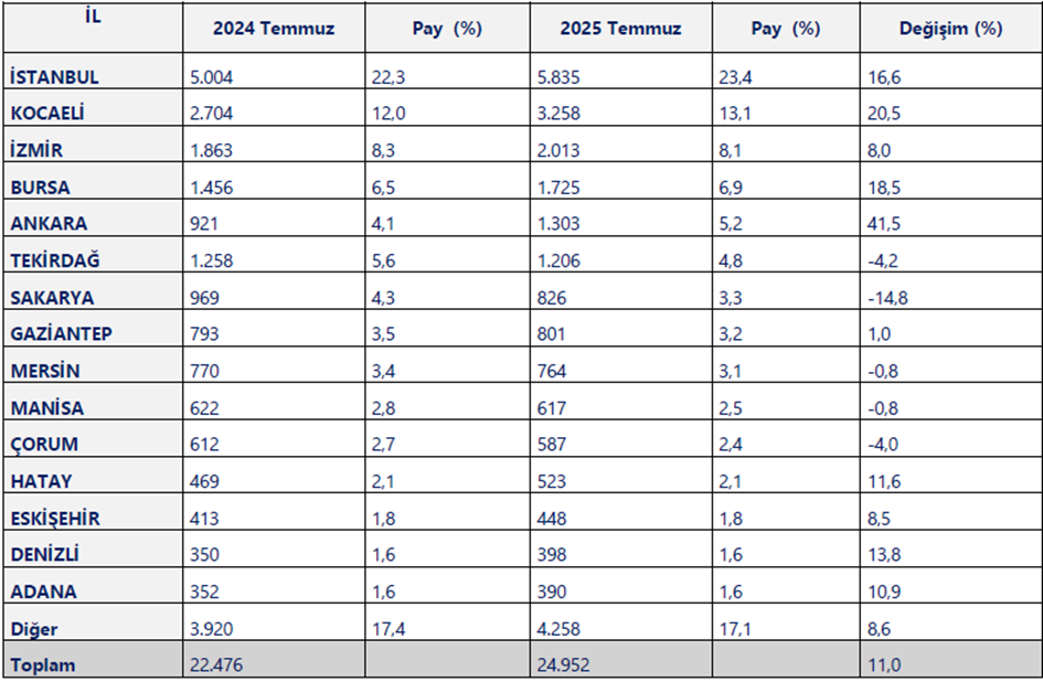 Ticaret Bakanlığı, Temmuz ayına ilişkin illere göre ihracat verilerini yayımladı.
