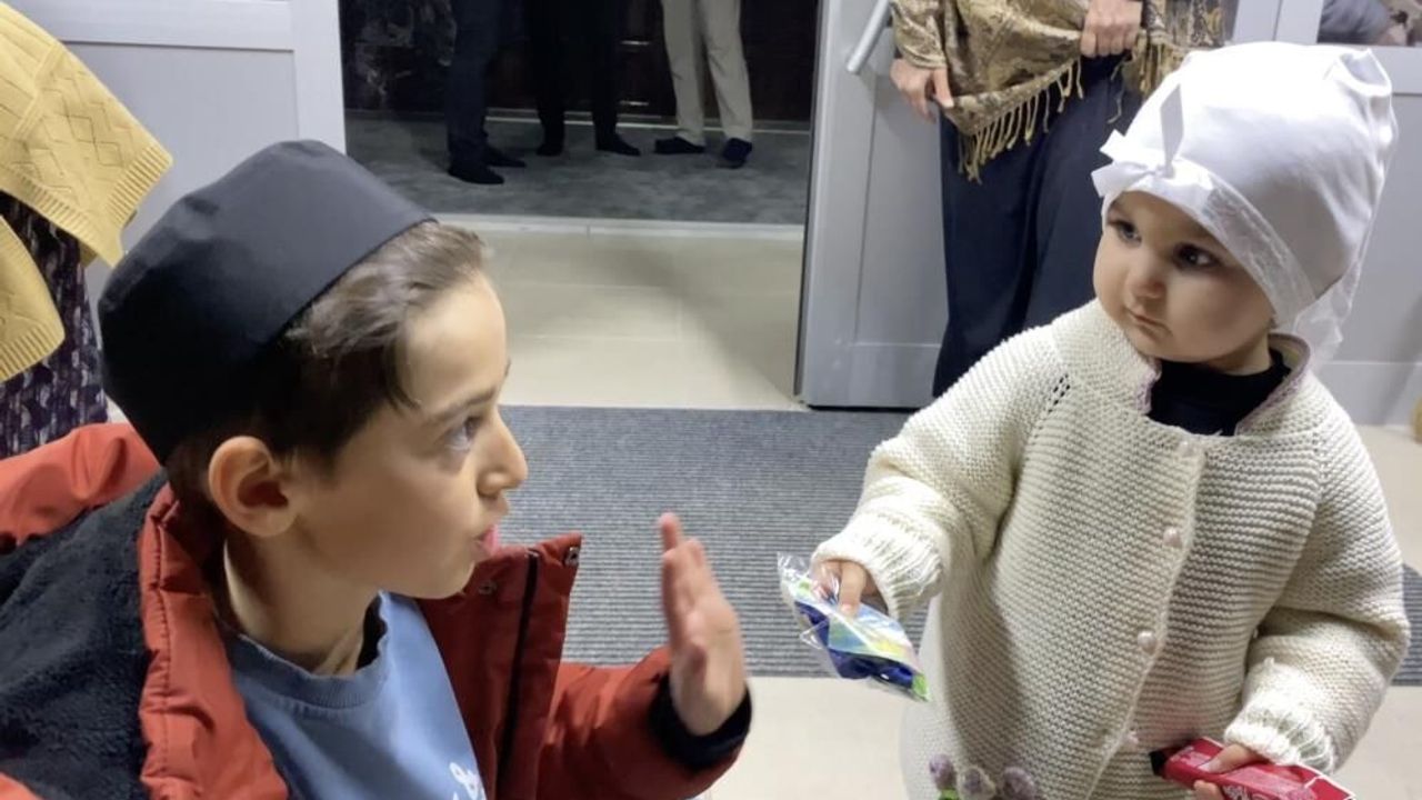 Namaz sonrası çocuklar, hediyelerini alan çocuklar büyük sevinç yaşadı.
