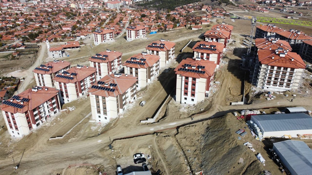 Çorum'un Sungurlu ilçesinde Toplu Konut İdaresi Başkanlığı (TOKİ) tarafından inşa edilen 364 konut hızla yükseliyor.