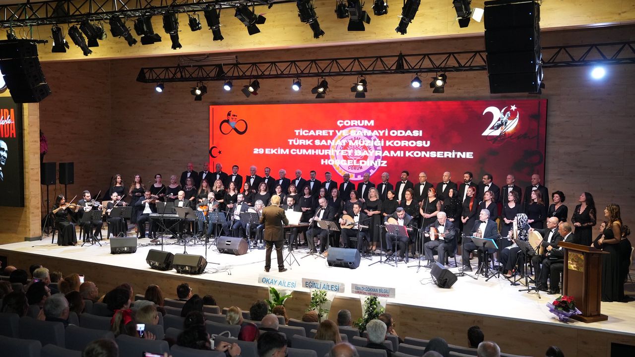 Çorum Ticaret ve Sanayi Odası Türk Sanat Müziği Korosu, 29 Ekim Cumhuriyet Bayramı nedeniyle izleyicilere unutulmaz bir gece yaşattı.