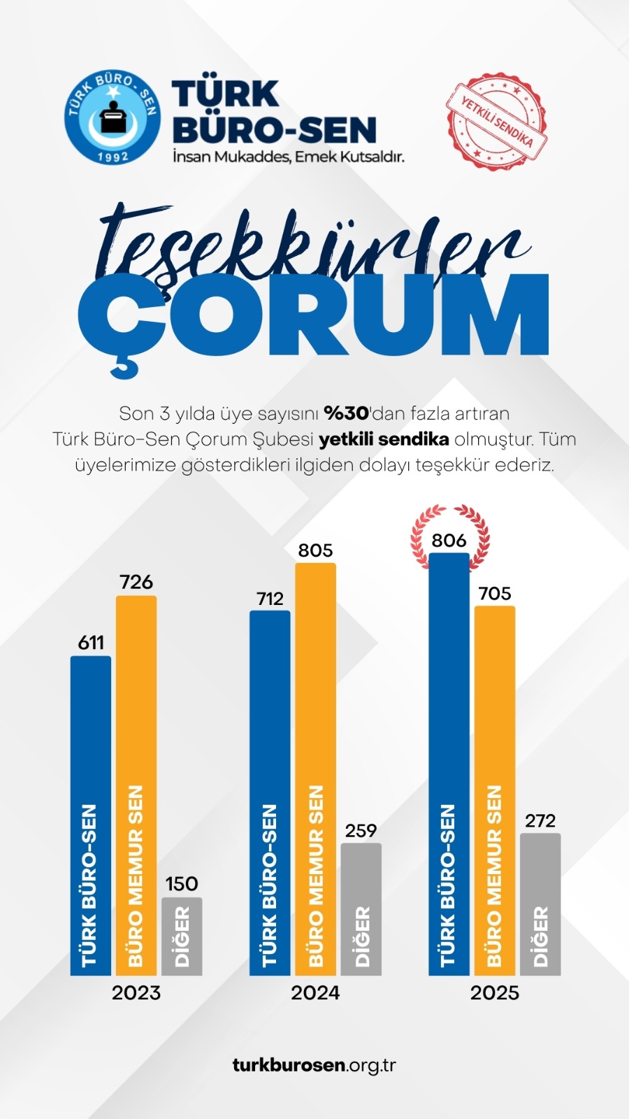 Türk Büro-Sen Çorum Şubesi, elde edilen bu başarıyla birlikte daha adil bir çalışma hayatı ve kamu çalışanlarının haklarının daha güçlü bir şekilde savunulması adına çalışmalarını sürdüreceğini açıkladı.
