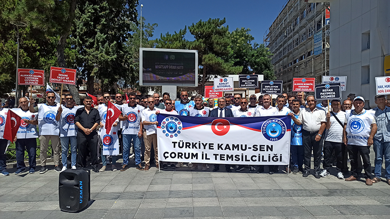 Hükümetin ilk zam teklifini "yetersiz ve adaletsiz" diyerek reddeden Türkiye Kamu-Sen Çorum’da eylem yaptı.