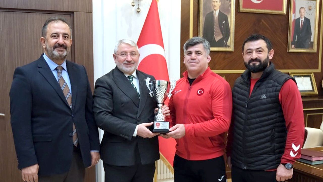 Ziyaret sırasında Güreş antrenörleri katıldıkları şampiyona hakkında bilgiler verdiler ve destekleri için Aşgın’a teşekkür ettiler. Belediye Başkanı Dr., Halil İbrahim Aşgın da güreş takımını elde ettiği başarıdan dolayı tebrik etti. Aşgın ‘Belediyemizin güreş takımında tarih yazmaya devam eden hocalarımız ve sporcularımızı yürekten kutluyor, tüm spor dallarında ter döken sporcularımıza üstün başarılar diliyorum’ dedi.