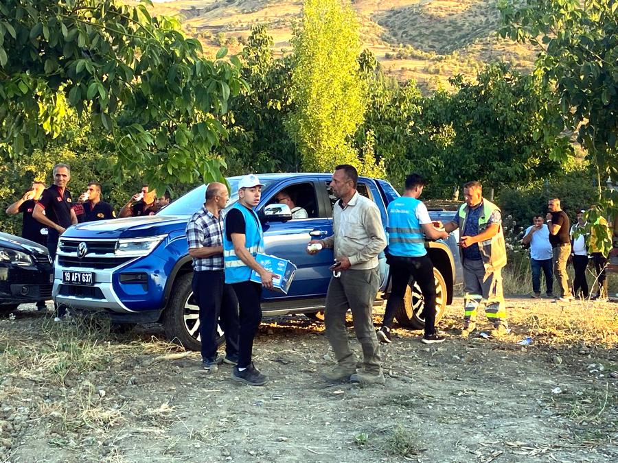 Ülkücü gençler bir taraftan yangın söndürme ekiplerine yardım ederken diğer taraftan ise ekiplere erzak dağıttı.