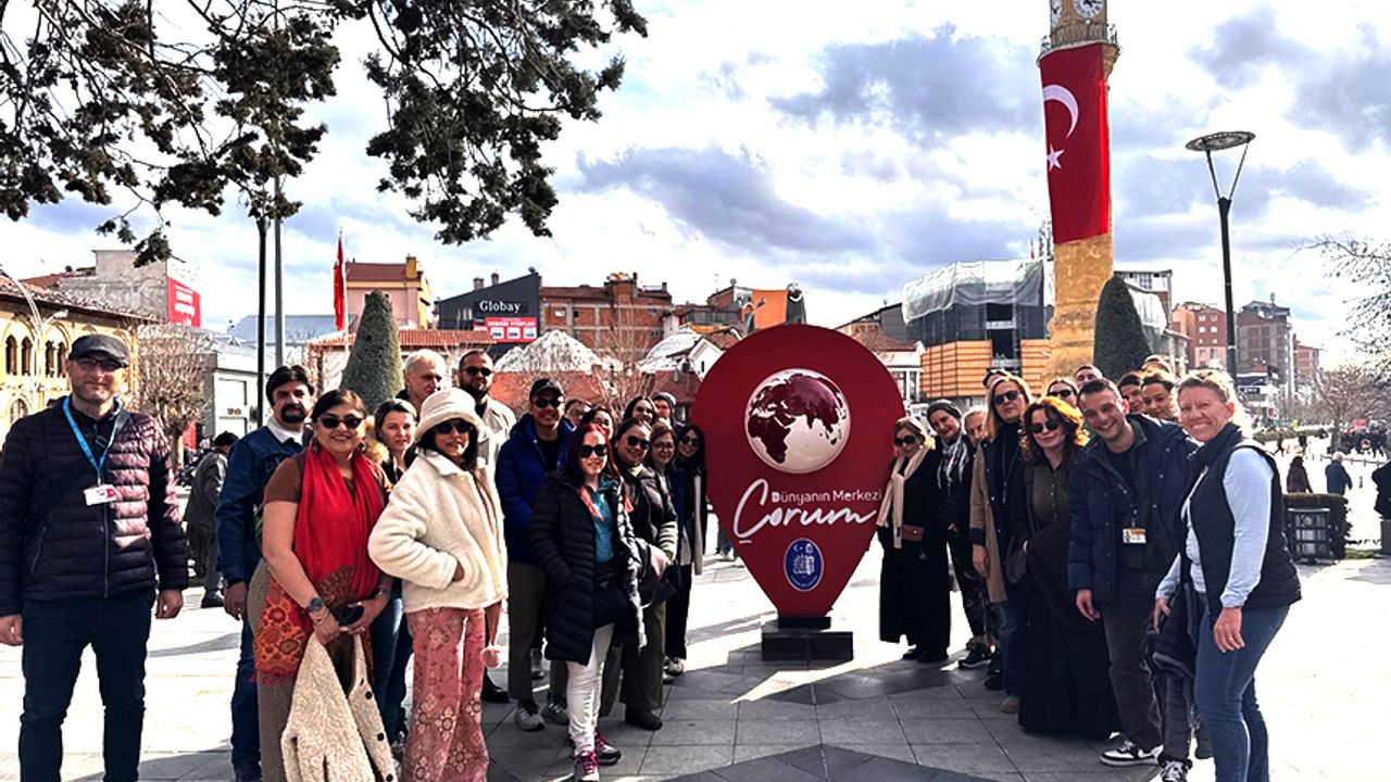 Doğu Akdeniz Uluslararası Turizm ve Seyahat Fuarı (EMITT) kapsamında Türkiye'ye gelen uluslararası seyahat acentelerinin temsilcileri, Çorum'u gezdi.