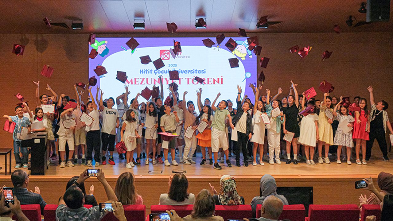 Hitit Üniversitesince bu yıl 7. kez düzenlenen "Çocuk Üniversitesi"ne katılan 59 öğrenci için temsili mezuniyet töreni düzenlendi.