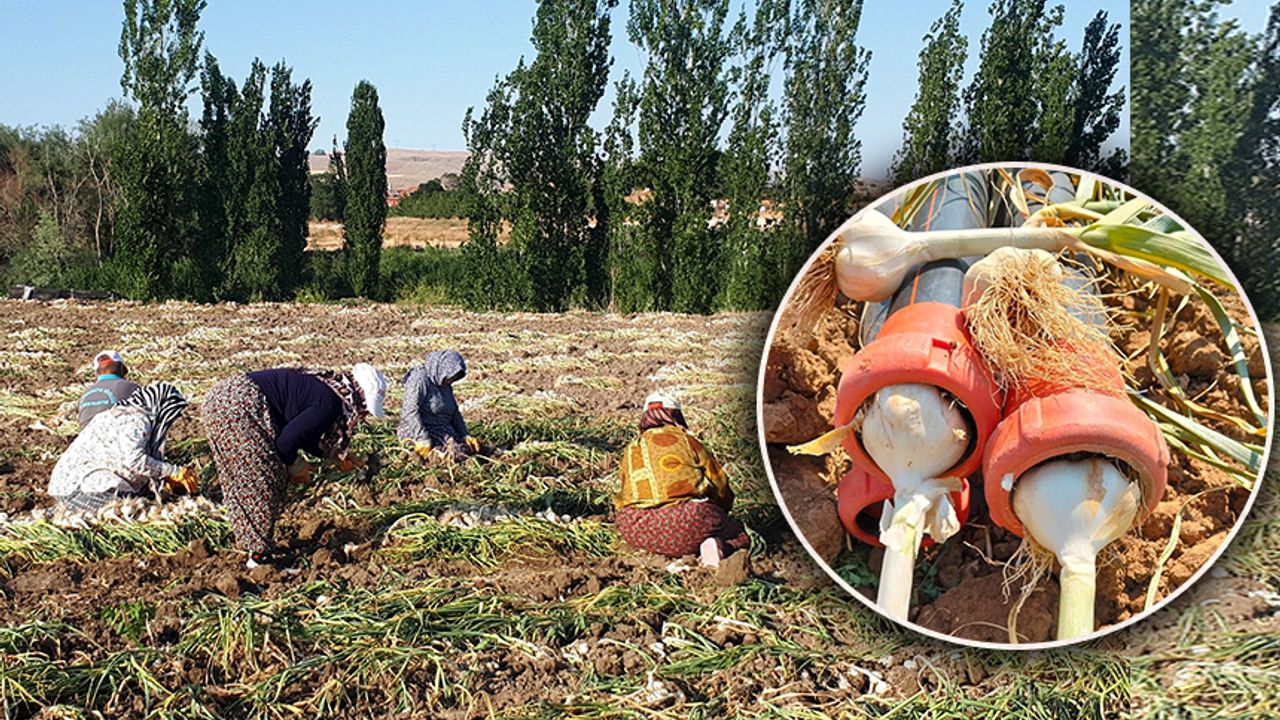 Çorum’da sarımsağı ile ünlü merkeze bağlı Üyük köyünde sarımsak hasadı başladı.