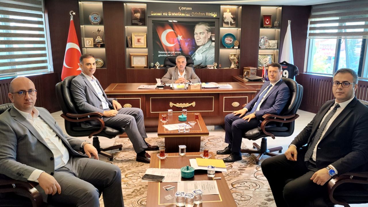 Vakıfbank Bölge Müdürü Bayram Gökçe, Çorum Esnaf ve Sanatkarlar Odası (ÇESOB) Başkanı Recep Gür'ü ziyaret etti.