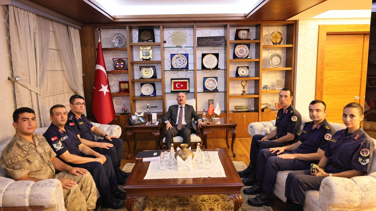 İl Jandarma Komutanlığı emrinde görev yapan, bir üst rütbeye terfi eden subay, astsubay ve uzman jandarma personeli, Vali Ali Çalgan tarafından makamında kabul edildi.