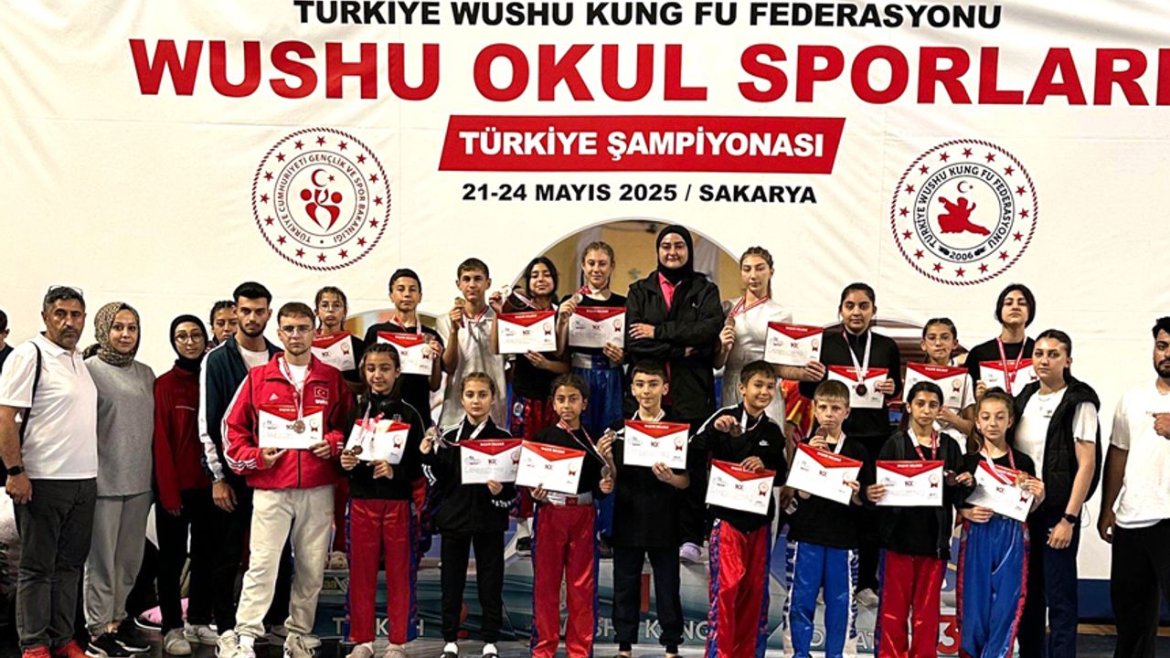 Sakarya’da yapılan Okul Sponrları Wushu Türkiye Şampiyonasında Çorumlu sporcular iki altın, yedi gümüş ve on bronz madalya olmak üzere 19 madalya aldı.