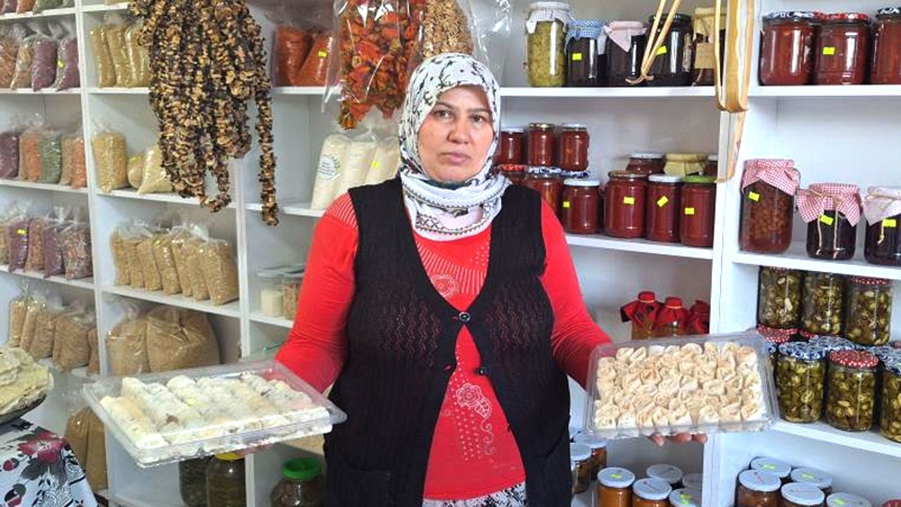 Çorum'un İskilip ilçesinde girişimci Ünzile Yücetürk, çevresinden gelen talep üzerine yöresel yemekler ve ürünler yaparak satmaya başladı.