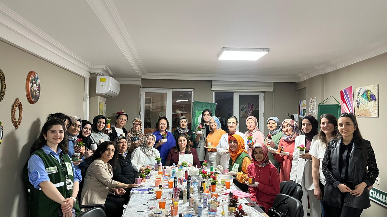 Yeşilay Çorum Şubesince düzenlenen atölye çalışmasında kadınlar saksı yapımını, boyama ve süsleme tekniklerini öğrendi.