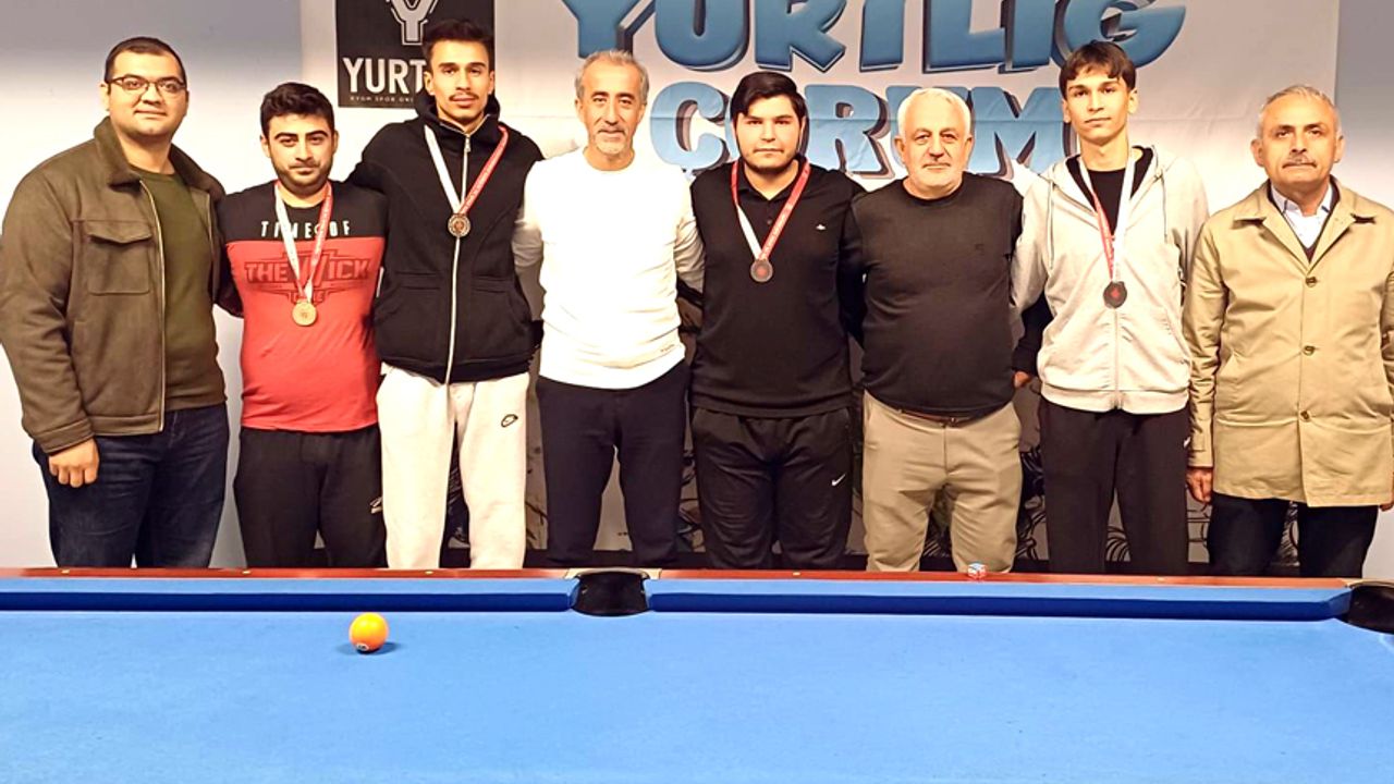 Çorum Gençlik ve Spor İl Müdürlüğü Kerebi Gazi Erkek yurdunda düzenlene Yurt Lig 9 Top Bilardo şampiyonası 14 sporcu mücadele etti.