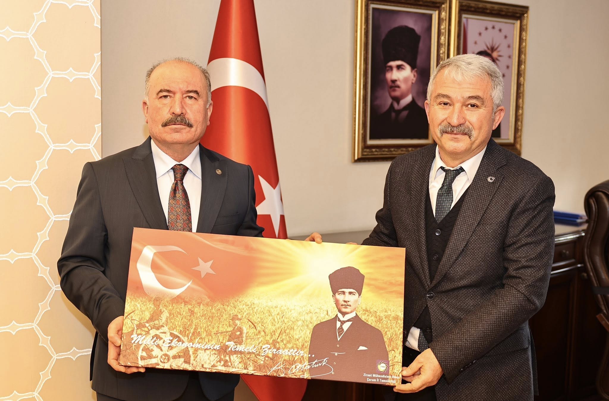 10 Ocak Ziraat Mühendisleri Günü dolayısıyla Çorum Ziraat Mühendisleri Odası Başkanı Necati Gül ve yönetim kurulu üyeleri, Vali Ali Çalgan’ı makamında ziyaret etti.